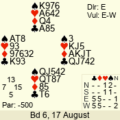 Con | Dc | Res | Score | Ld | Pairs | Rd | Tbl | 4  | E | -3 | 300 | K | 01 - 08 | 10 | 1 |