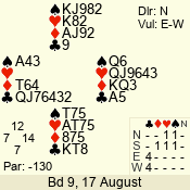 Con | Dc | Res | Score | Ld | Pairs | Rd | Tbl | 2 x | E | -2 | 500 | T | 14 - 09 | 9 | 4 |