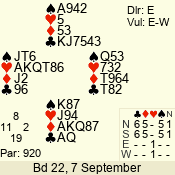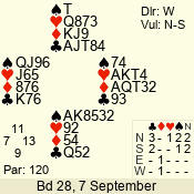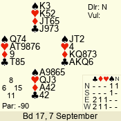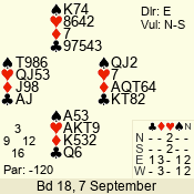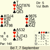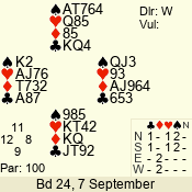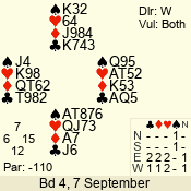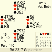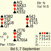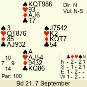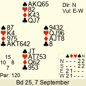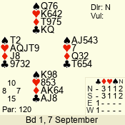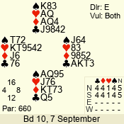 Con | Dc | Res | Score | Ld | Pairs | Rd | Tbl | 3 N | N | +2 | 660 | 4 | 06 - 03 | 4 | 6 |