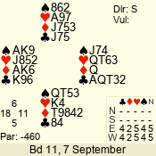 Con | Dc | Res | Score | Ld | Pairs | Rd | Tbl | 4  | S | +1 | 450 | 5 | 04 - 07 | 5 | 4 |