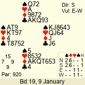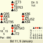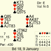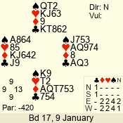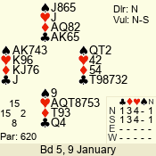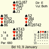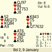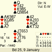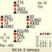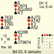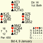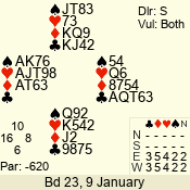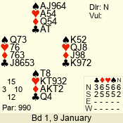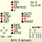 Con | Dc | Res | Score | Ld | Pairs | Rd | Tbl | 1 N | E | -4 | 400 | J | 11 - 23 | 12 | 11 |