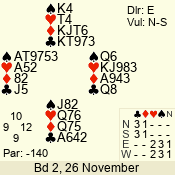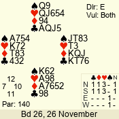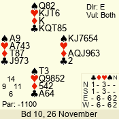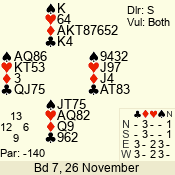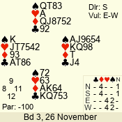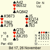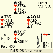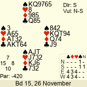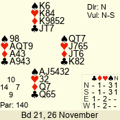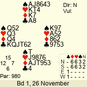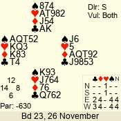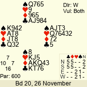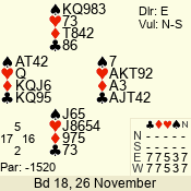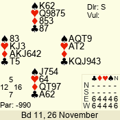| 3 NT | S | +1 | 430 | 2 | 05 - 11 | 1 | 6 |