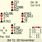| 3 NT | W | +4 | -520 | K | 01 - 10 | 12 | 5 |