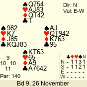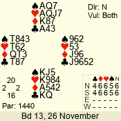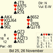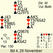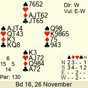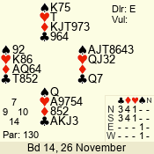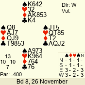 | 3 NT | W | +1 | -430 | 3 | 11 - 13 | 8 | 2 |