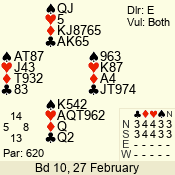 | Con | Dc | Res | Score | Ld | Pairs | Rd | Tbl | 5  | S | +2 | 640 | T | 02 - 01 | 2 | 2 |