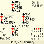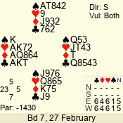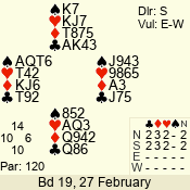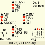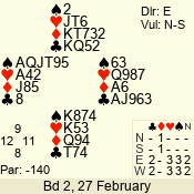 | Con | Dc | Res | Score | Ld | Pairs | Rd | Tbl | 3  | S | +2 | 150 | A | 04 - 03 | 2 | 4 |