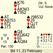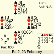 | Con | Dc | Res | Score | Ld | Pairs | Rd | Tbl | | 3 N | S | +1 | 630 | A | 01 - 02 | 7 | 4 |
