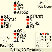 | Con | Dc | Res | Score | Ld | Pairs | Rd | Tbl | | 1 N | N | +1 | 120 | K | 07 - 11 | 8 | 6 |