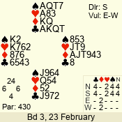 | Con | Dc | Res | Score | Ld | Pairs | Rd | Tbl | | 3 N | S | +1 | 430 | 2 | 05 - 03 | 7 | 1 |