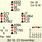 | 3 NT | W | +2 | -660 | 2 | 04 - 05 | 6 | 4 |