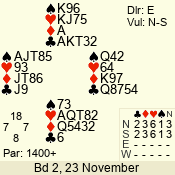 | 3 NT | W | +1 | -630 | 2 | 02 - 06 | 3 | 2 |