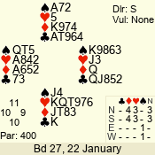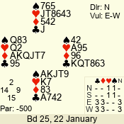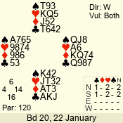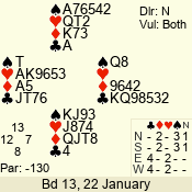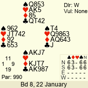 | 3 NT | W | +3 | -690 | 5 | 02 - 02 | 1 | 2 |
