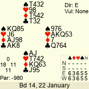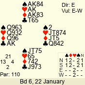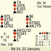 | 3 NT | W | +2 | -460 | 6 | 06 - 06 | 1 | 6 |
