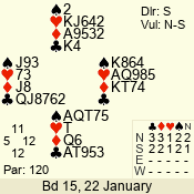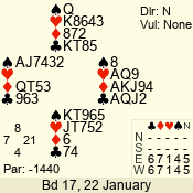 | 3 NT | S | +1 | 430 | 8 | 07 - 02 | 6 | 7 |