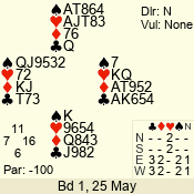 | Con | Dc | Res | Score | Ld | Pairs | Rd | Tbl | | 3 N | E | -2 | 200 | J | 10 - 07 | 4 | 10 |