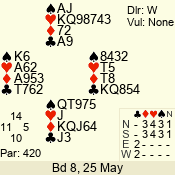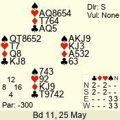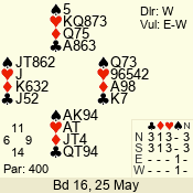 | Con | Dc | Res | Score | Ld | Pairs | Rd | Tbl | | 3 N | S | +1 | 430 | 2 | 10 - 01 | 10 | 10 |