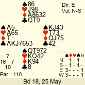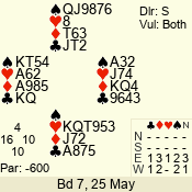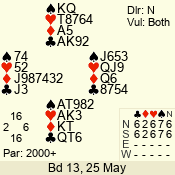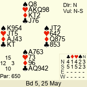 | Con | Dc | Res | Score | Ld | Pairs | Rd | Tbl | | 1 N | S | = | 90 | 3 | 06 - 10 | 7 | 6 |