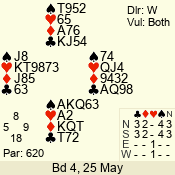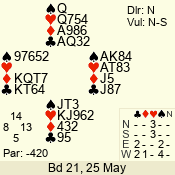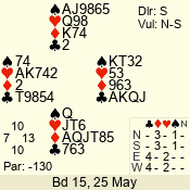 | Con | Dc | Res | Score | Ld | Pairs | Rd | Tbl | | 2 N | W | -3 | 150 | 6 | 06 - 04 | 3 | 6 |
