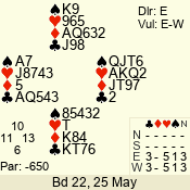 | Con | Dc | Res | Score | Ld | Pairs | Rd | Tbl | 4  | S | +1 | 650 | 9 | 04 - 06 | 9 | 4 |