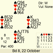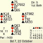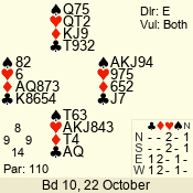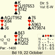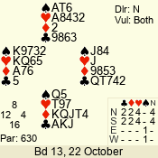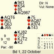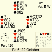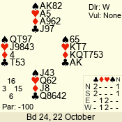 | Con | Dc | Res | Score | Ld | Pairs | Rd | Tbl | | 1 N | S | +2 | 150 | 6 | 06 - 06 | 1 | 6 |