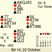 | Con | Dc | Res | Score | Ld | Pairs | Rd | Tbl | 4  | S | +1 | 450 | 2 | 01 - 04 | 4 | 1 |