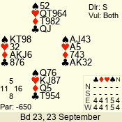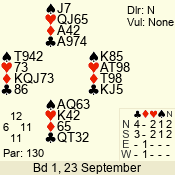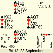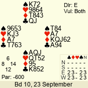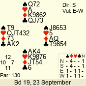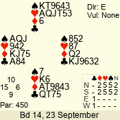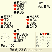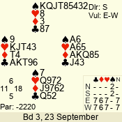 | 3 NT | E | +2 | -460 | 2 | 02 - 05 | 4 | 2 |