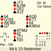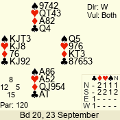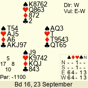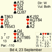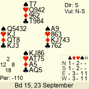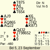 | 3 NT | W | +2 | -460 | 7 | 05 - 03 | 3 | 5 |