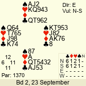 | 3 NT | E | +1 | -630 | 7 | 02 - 04 | 5 | 2 |