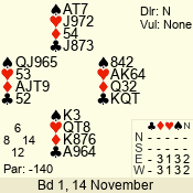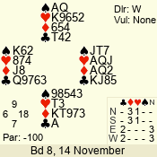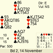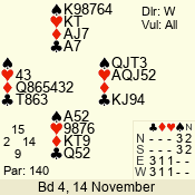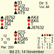 | 3 NT | E | +2 | -460 | 3 | 03 - 03 | 1 | 3 |