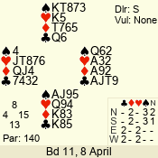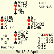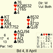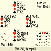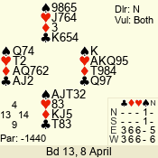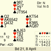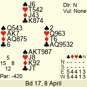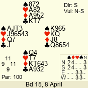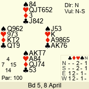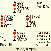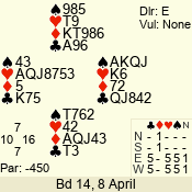 | Con | Dc | Res | Score | Ld | Pairs | Rd | Tbl | 4  | N | +1 | 450 | A | 13 - 01 | 13 | 13 |