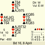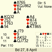 | Con | Dc | Res | Score | Ld | Pairs | Rd | Tbl | 4  | S | +1 | 650 | 8 | 11 - 05 | 7 | 11 |