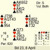 | Con | Dc | Res | Score | Ld | Pairs | Rd | Tbl | | 6 N | N | +1 | 1470 | 9 | 01 - 02 | 14 | 1 |