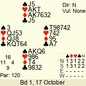 | Con | Dc | Res | Score | Ld | Pairs | Rd | Tbl | 3  | N | +2 | 150 | T | 01 - 01 | 1 | 1 |