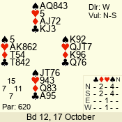 | Con | Dc | Res | Score | Ld | Pairs | Rd | Tbl | 4  | S | = | 620 | 5 | 03 - 04 | 6 | 3 |