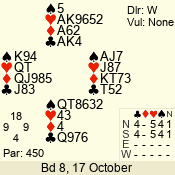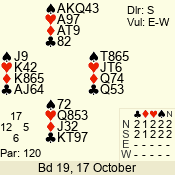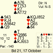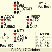 | Con | Dc | Res | Score | Ld | Pairs | Rd | Tbl | 4  | N | +1 | 650 | 6 | 02 - 03 | 6 | 2 |