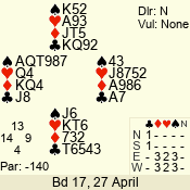 | Con | Dc | Res | Score | Ld | Pairs | Rd | Tbl | 1  | S | +2 | 140 | J | 02 - 04 | 6 | 2 |