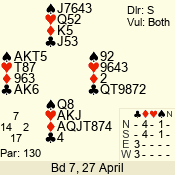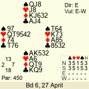 | Con | Dc | Res | Score | Ld | Pairs | Rd | Tbl | 4  | S | +1 | 450 | 6 | 02 - 03 | 7 | 2 |