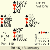 | 3 NT | W | +2 | -460 | 3 | 01 - 01 | 1 | 1 |