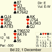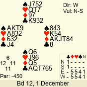 | Con | Dc | Res | Score | Ld | Pairs | Rd | Tbl | 4  | S | +1 | 450 | 5 | 06 - 06 | 1 | 6 |