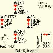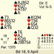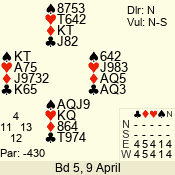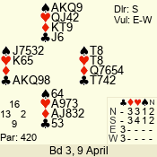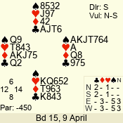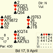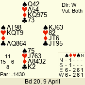 | Con | Dc | Res | Score | Ld | Pairs | Rd | Tbl | | 3 N | N | +1 | 430 | T | 15 - 15 | 1 | 15 |