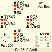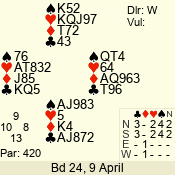 | Con | Dc | Res | Score | Ld | Pairs | Rd | Tbl | 4  | S | = | 420 | A | 13 - 10 | 4 | 13 |