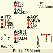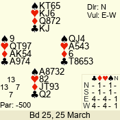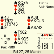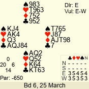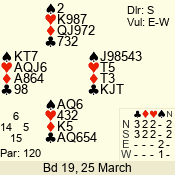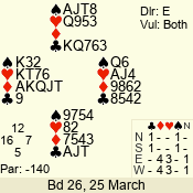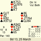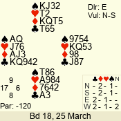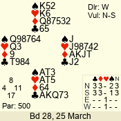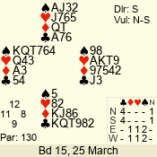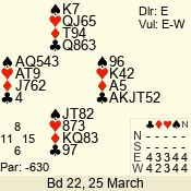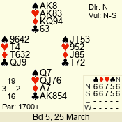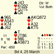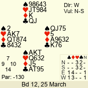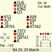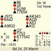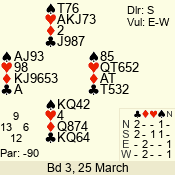 | 3 NT | W | +1 | -630 | 5 | 01 - 03 | 6 | 1 |