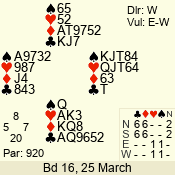 | 3 NT | E | +2 | -460 | 9 | 04 - 07 | 5 | 4 |