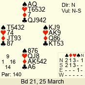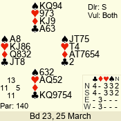 | 3 NT | S | +1 | 430 | 5 | 05 - 07 | 6 | 5 |