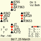 | 3 NT | W | +1 | -630 | 6 | 02 - 05 | 5 | 2 |