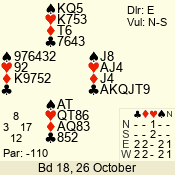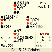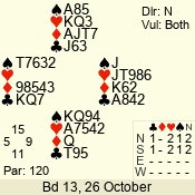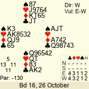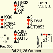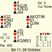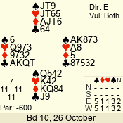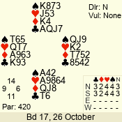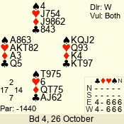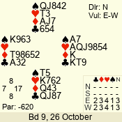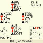 | Con | Dc | Res | Score | Ld | Pairs | Rd | Tbl | | 3 N | N | +1 | 630 | J | 05 - 05 | 1 | 5 |