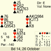 | Con | Dc | Res | Score | Ld | Pairs | Rd | Tbl | 2  | S | +1 | 140 | 3 | 05 - 02 | 4 | 5 |