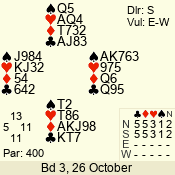 | Con | Dc | Res | Score | Ld | Pairs | Rd | Tbl | 5  | S | = | 400 | 4 | 03 - 05 | 6 | 3 |