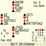 | Con | Dc | Res | Score | Ld | Pairs | Rd | Tbl | 4  | S | +1 | 650 | 5 | 01 - 06 | 3 | 1 |