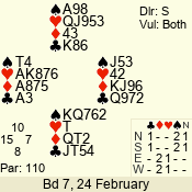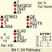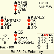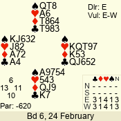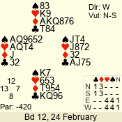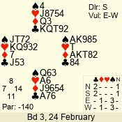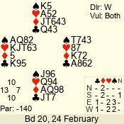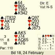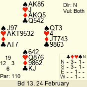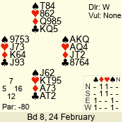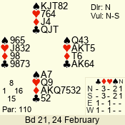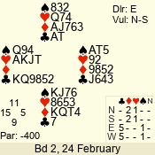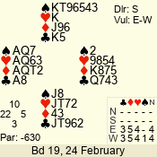 | 3 NT | W | +1 | -630 | 5 | 02 - 19 | 22 | 2 |